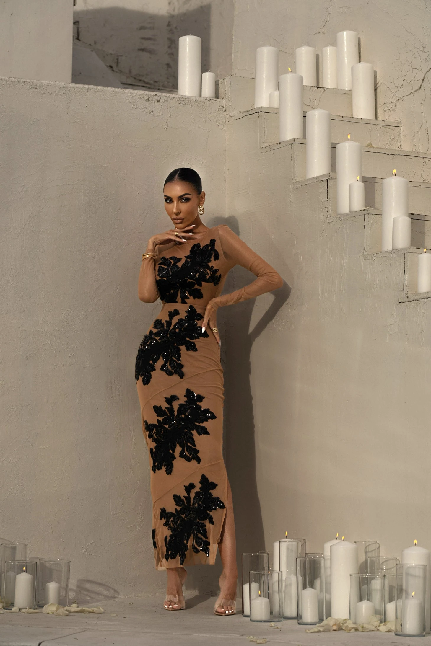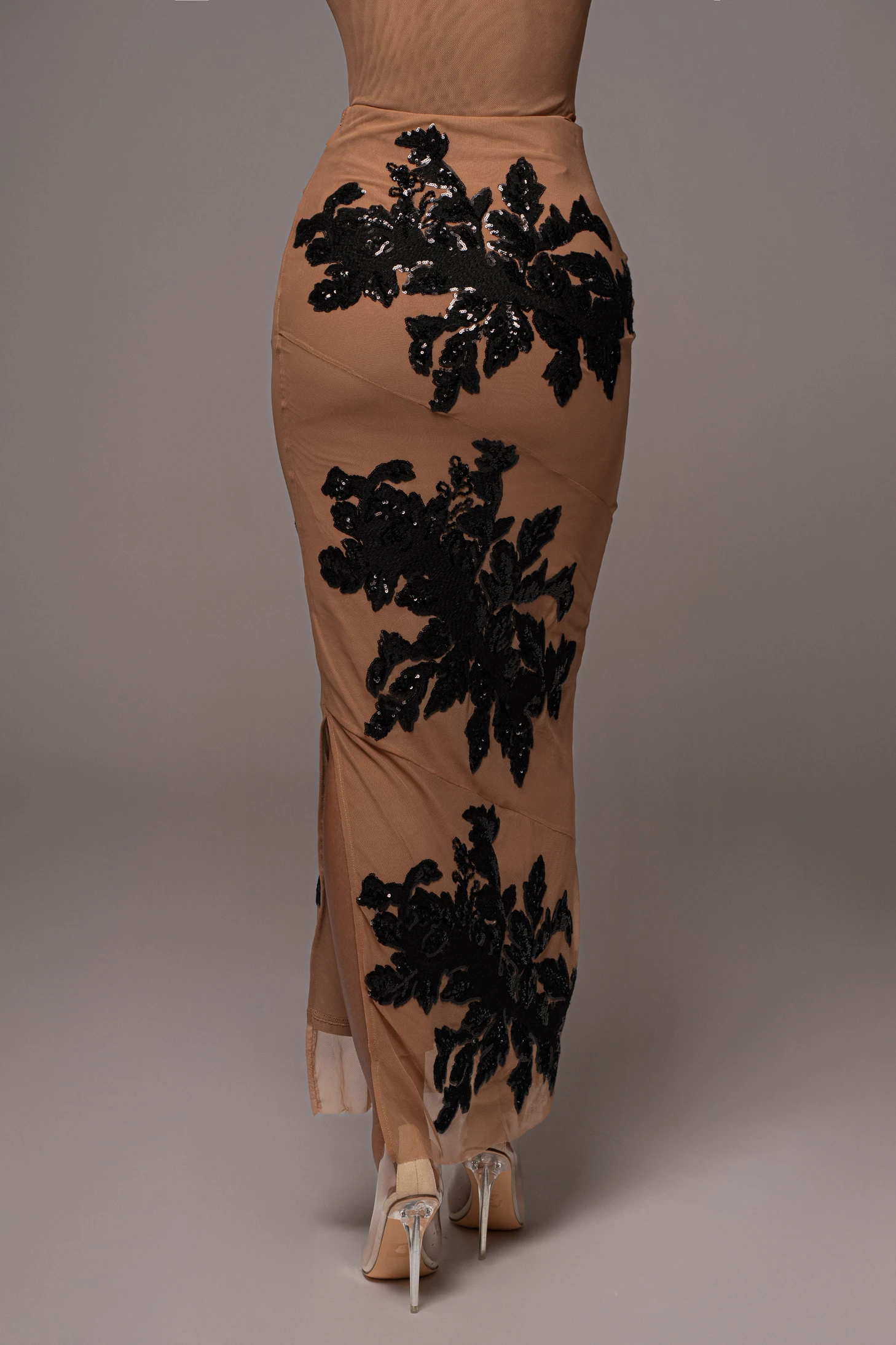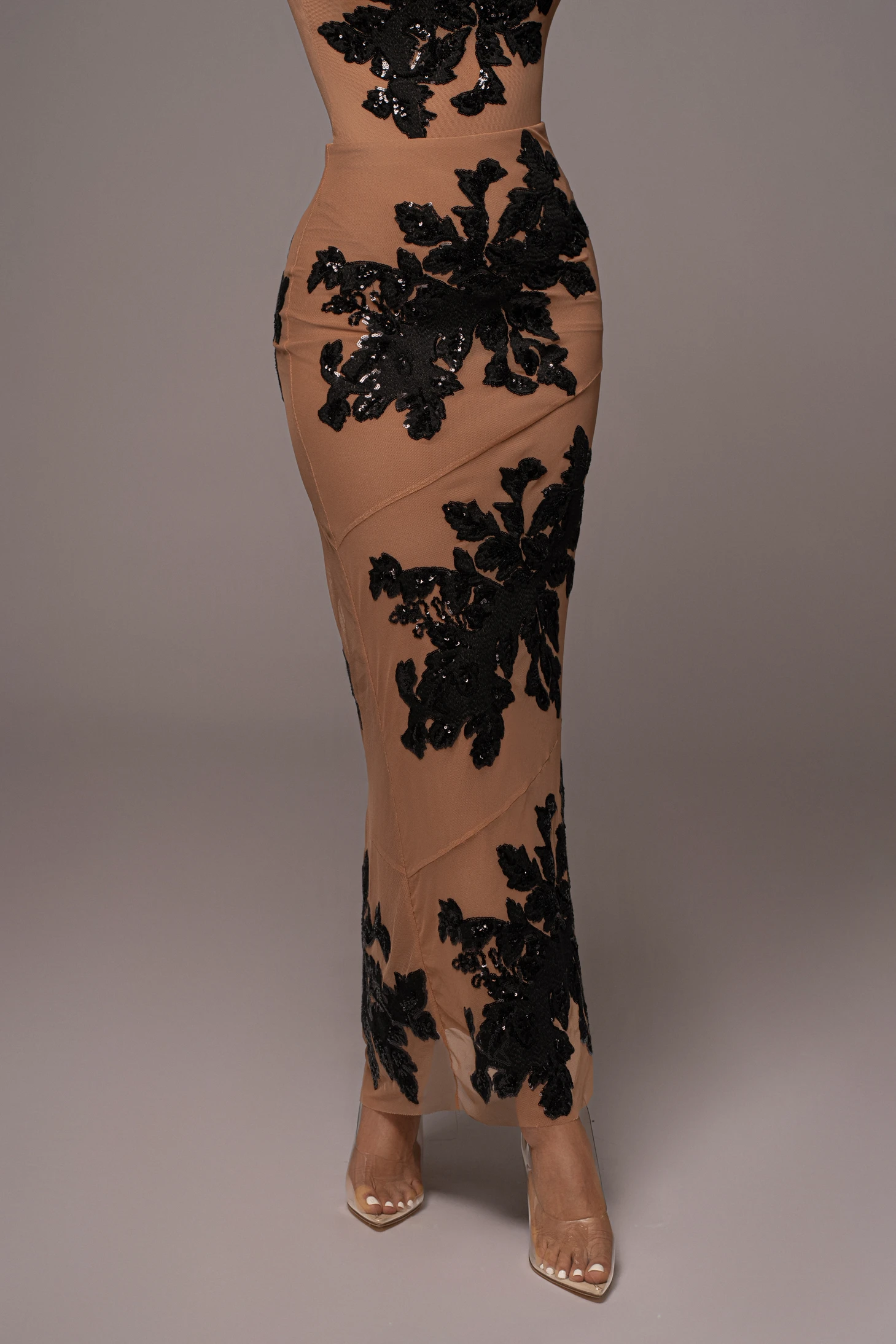 Embellishments are back in our Noir Edena Embroidered Midi Skirt. Our latest midi skirt is embroidered with overlays of lovely floral embellishments throughout. A side zipper closure and low slit on one side finish the look. Pair with our