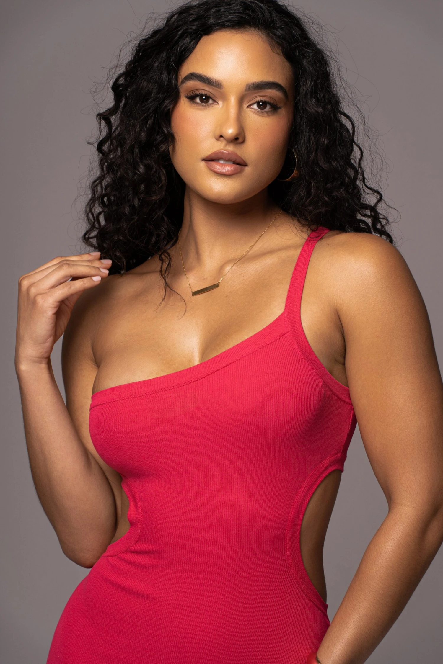 Achieve a sleek look with our Emerald Ruth One Shoulder Dress! This bodycon midi dress comes with a one shoulder neckline and details an edgy cutout at the back waist with a back slit hem. Designed in stretchy ribbed material with a vibrant green hue perfect for Summer getaways! Single lined. Stretchy.