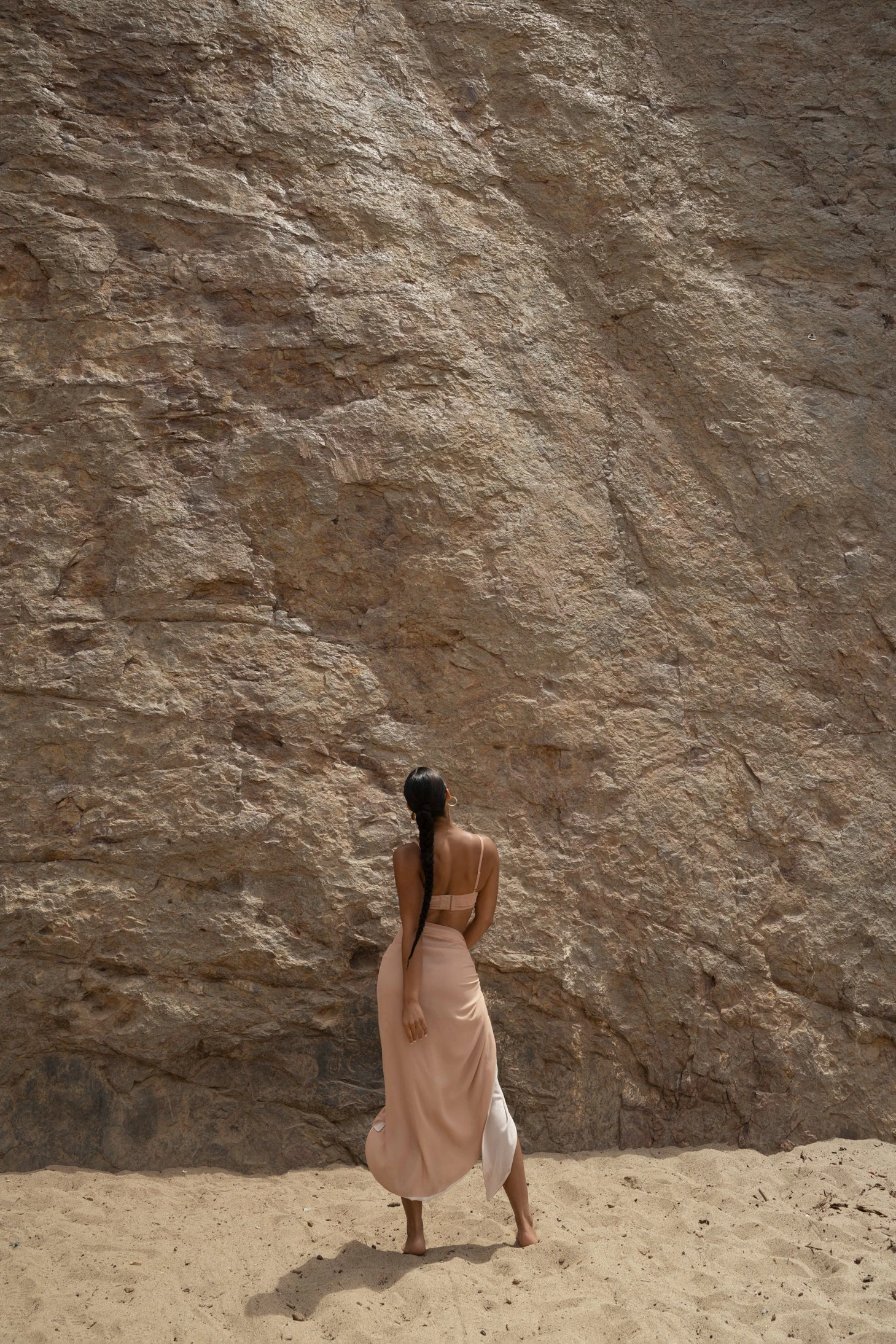 Our Tan Uncharted Waters Sarong is made for the beach and beyond! This stunning wrap style sarong showcases a tasteful ombre design with maxi length hem and stunning reversible feature giving twice the color. Crafted in lightweight chiffon fabric perfect for keeping cool under the sun. Pair with our